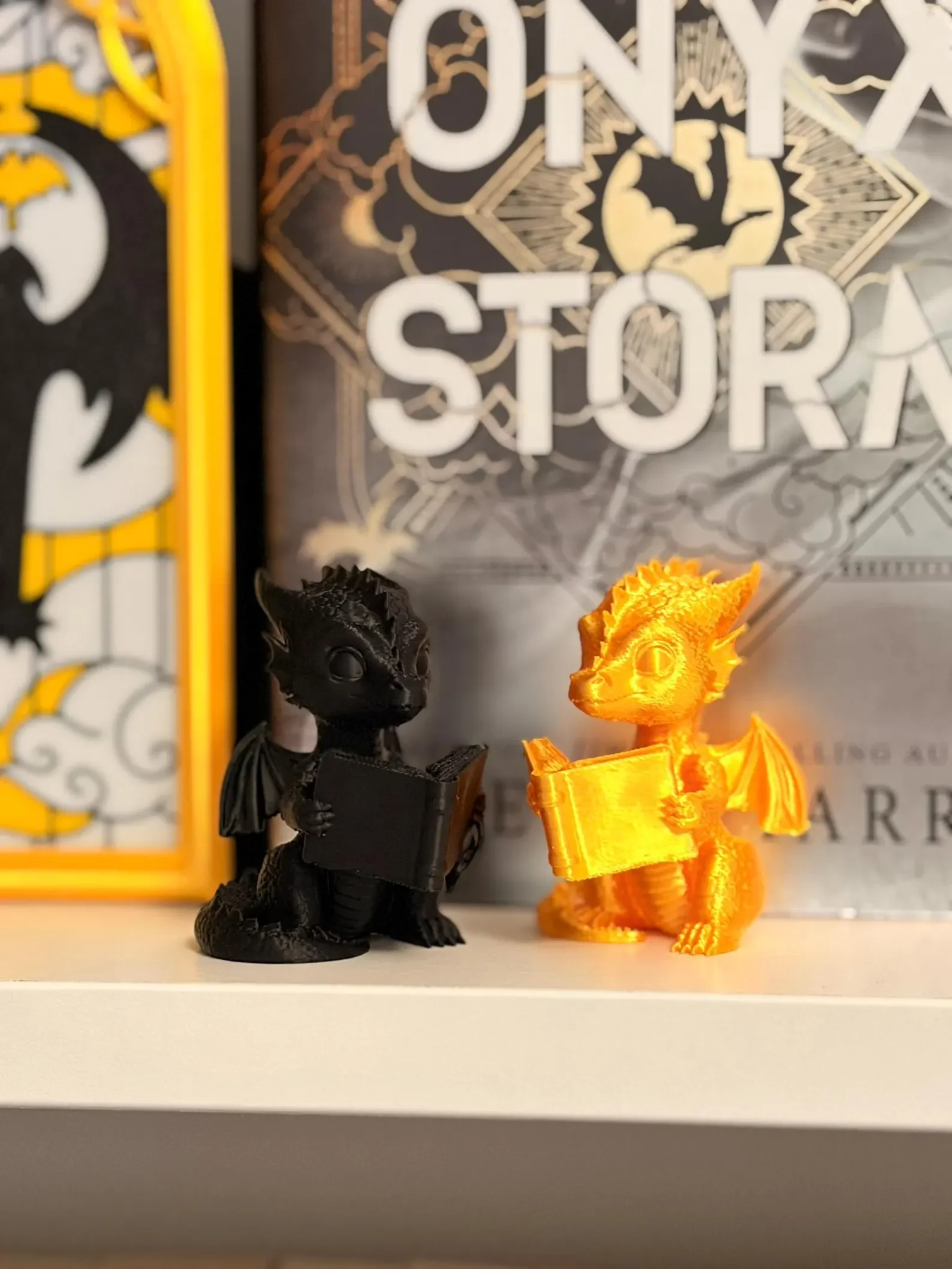 Inspired by Andarna (gold) and Tairn (black) from Fourth Wing by Rebecca Yarros