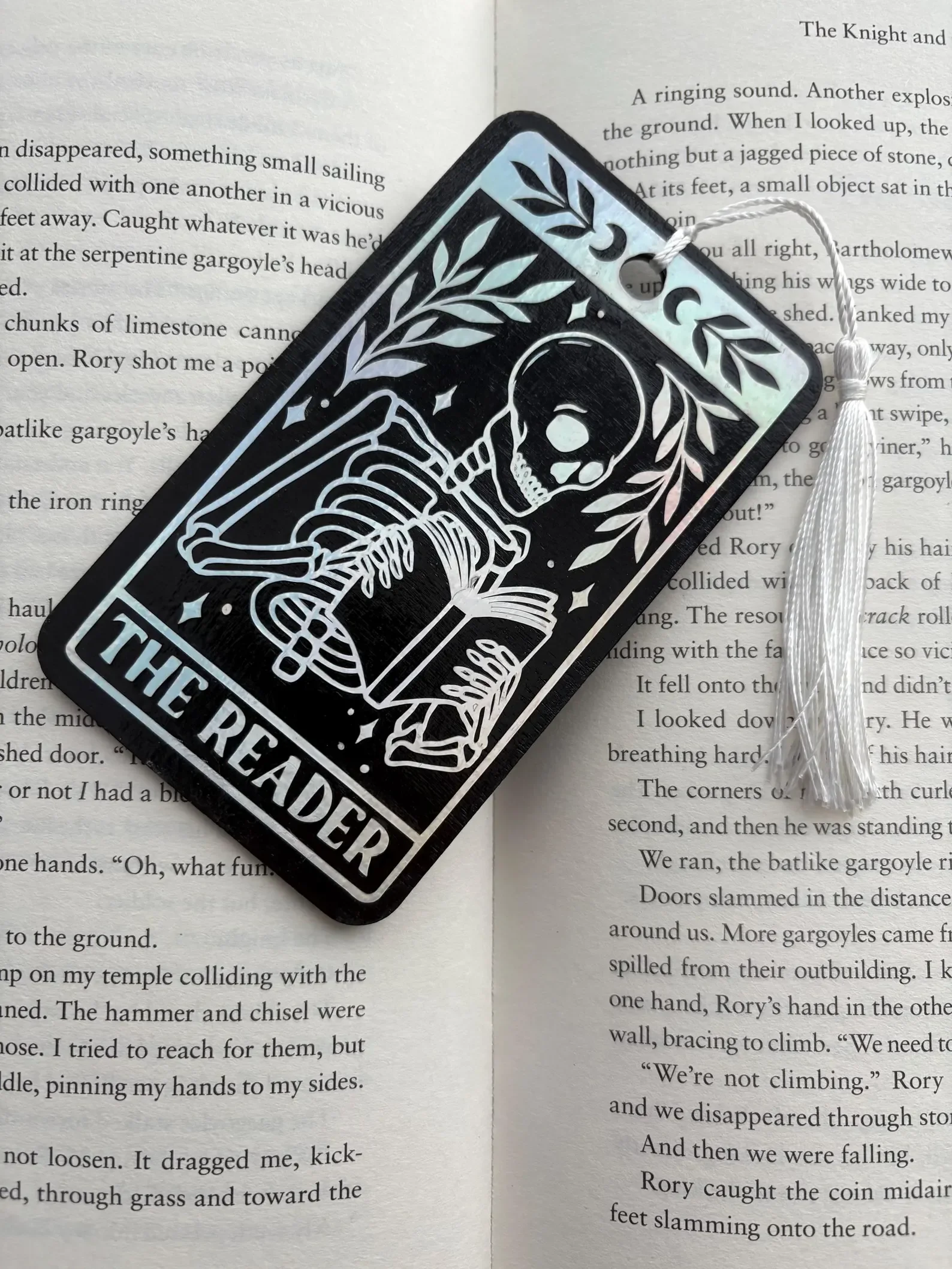 Dive into the arcane with this tarot-inspired bookmark: The Reader, a contemplative skeleton lost in a good book.